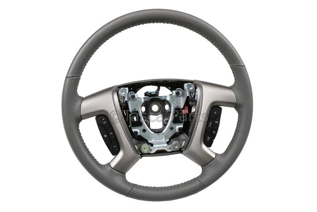 Silverado, sierra. Without heated wheel. With leather wrapped. With accessory controls. Without all Terrain pkg.. Without lt/slt package. Ebony. Without WOOD TRIM. with leather, with accessory control titanium. This GM Genuine Part is designed, engineered, and tested to rigorous standards and is backed by General Motors