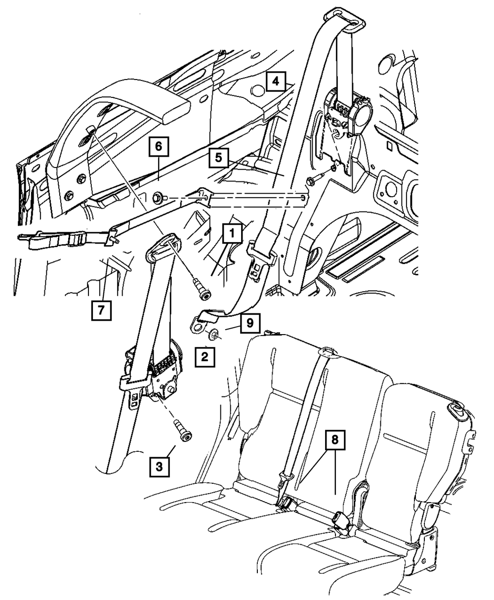 Rear Seat Belt, Right - Mopar (xb00mf1af)